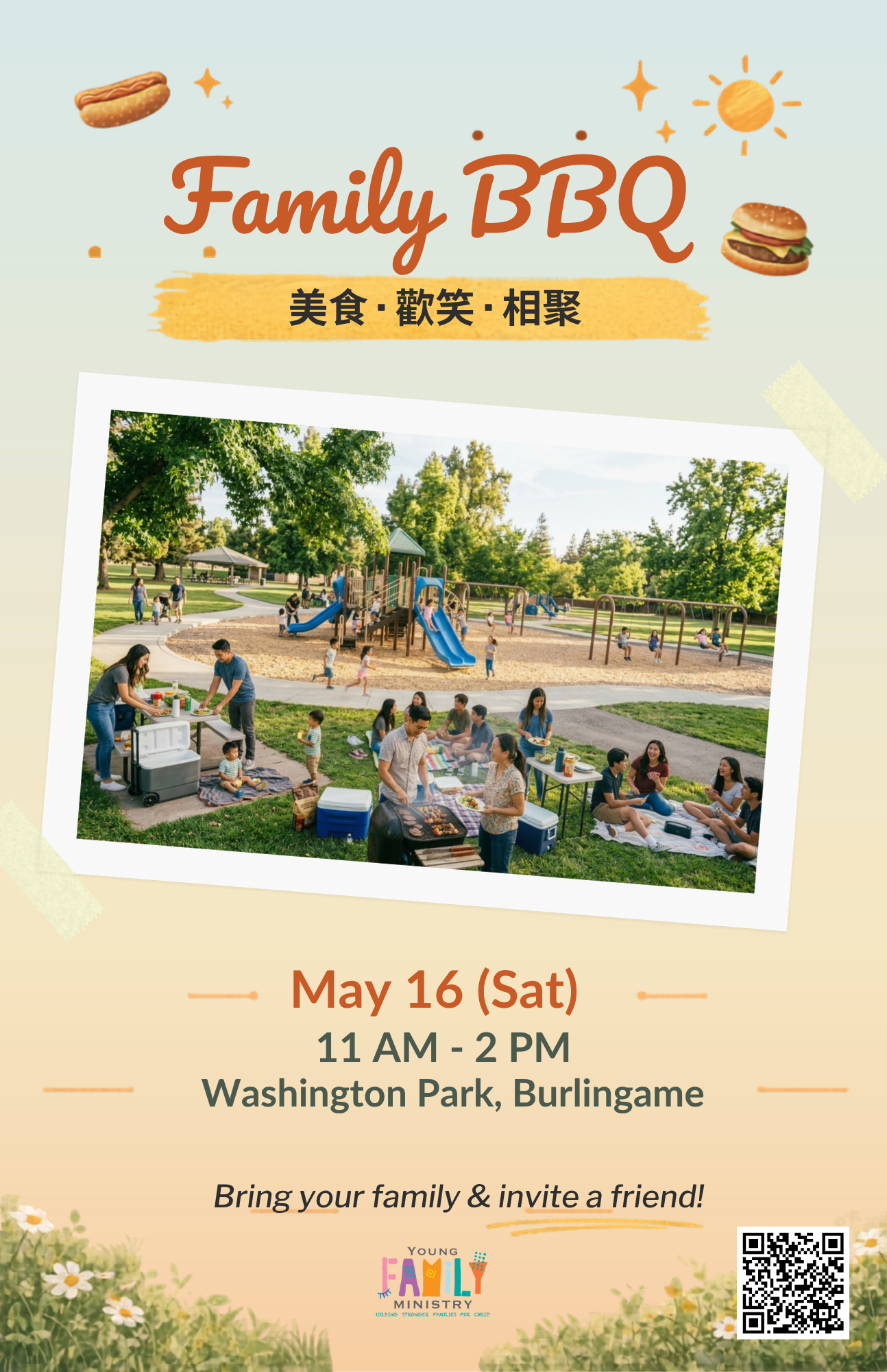 Young Family Ministry supports families with children 18 and under through Christ-centered fellowship. Parenting comes with joys and challenges, but you don’t have to face them alone. Join our welcoming community to grow in faith, build meaningful connections, and find strength in God’s love. We typically meet every 1st and 3rd Saturdays, beginning with an optional dinner at 5:30pm, followed with worship and small group discussion at 6:30pm. All of our meetings provides childcare and activities for children under 18.
